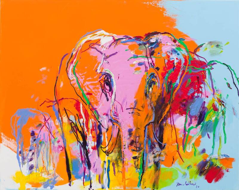 Van Lokhorst werkt voornamelijk met olieverf, gemengde technieken en polycarbonaat panelen.